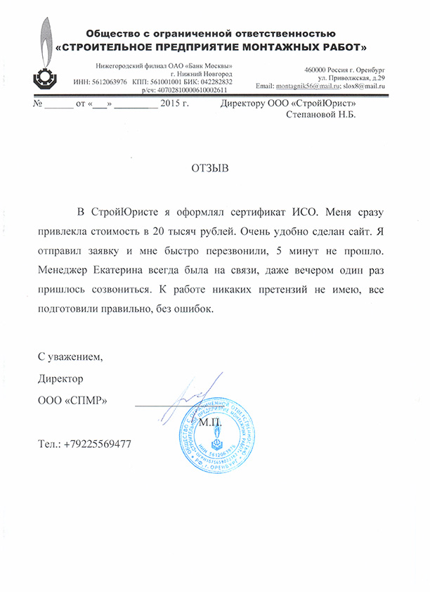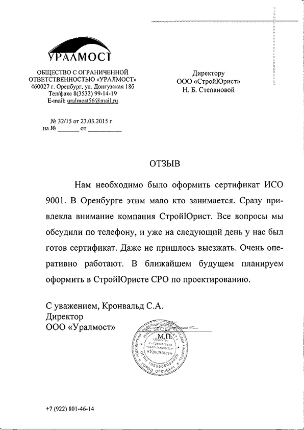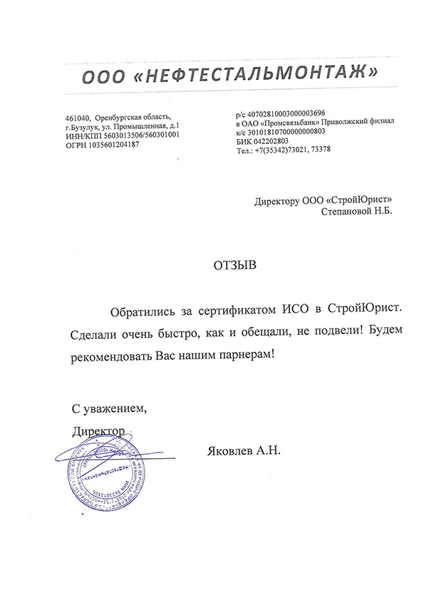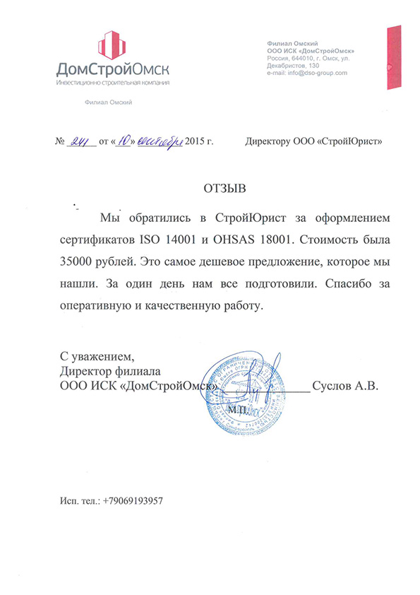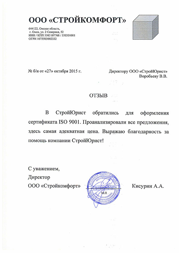 Отзывы клиентов "СтройЮрист" по ISO в Норильске