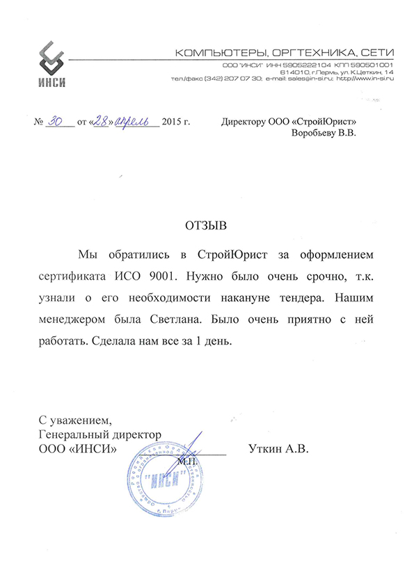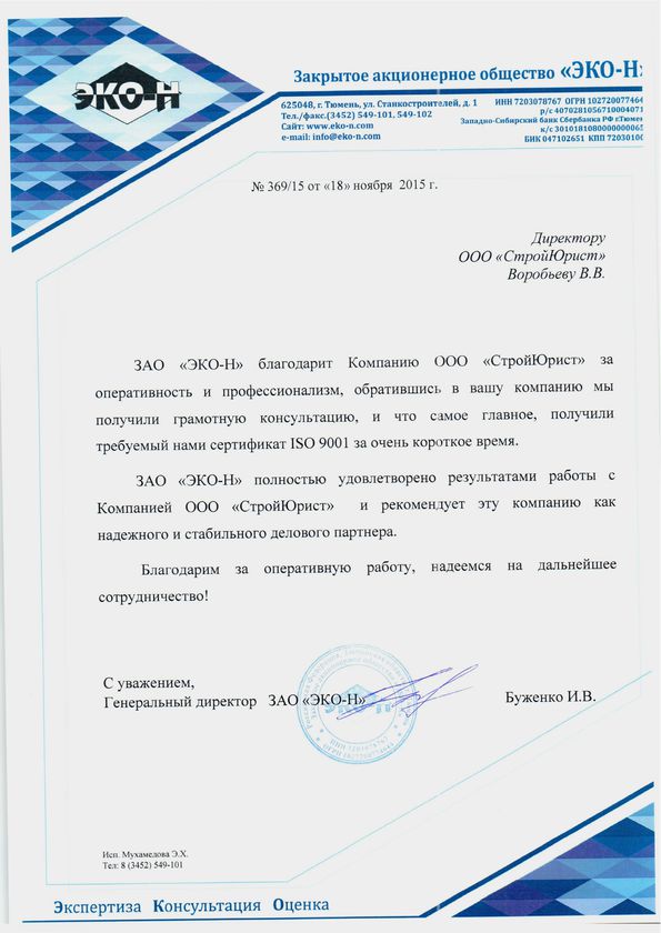 Отзывы клиентов "СтройЮрист" по ISO в Норильске
