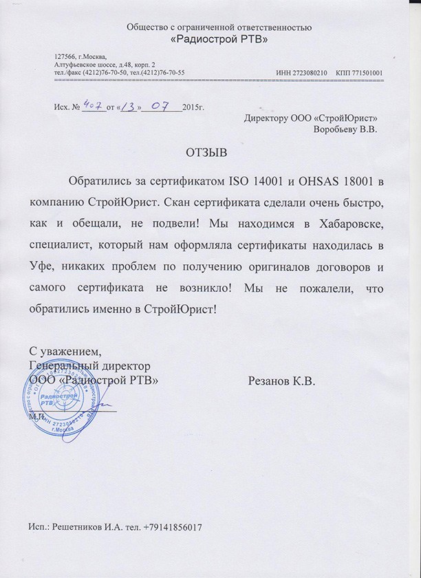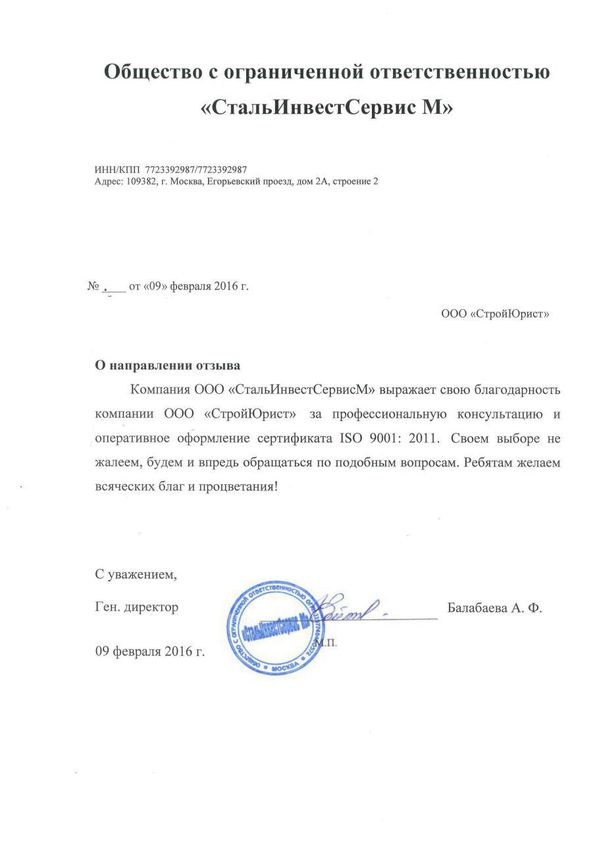 Отзывы клиентов "СтройЮрист" по ISO в Норильске