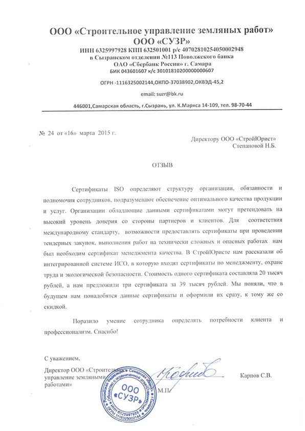 Отзывы клиентов "СтройЮрист" по ISO в Норильске