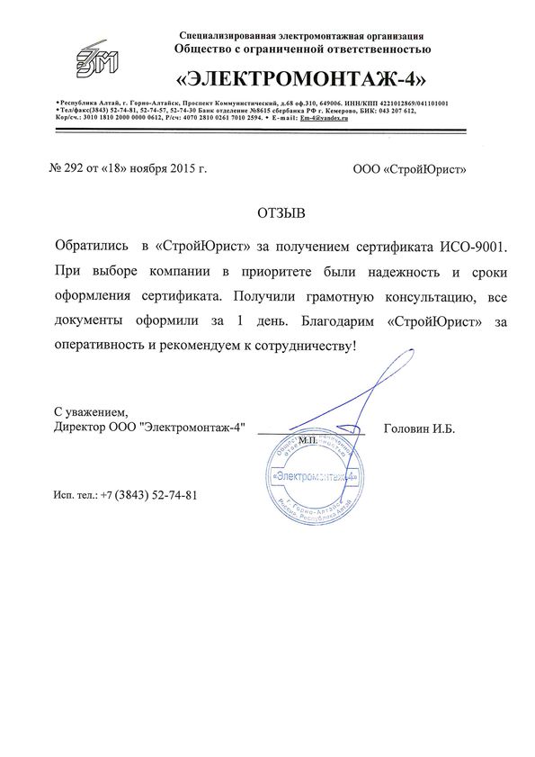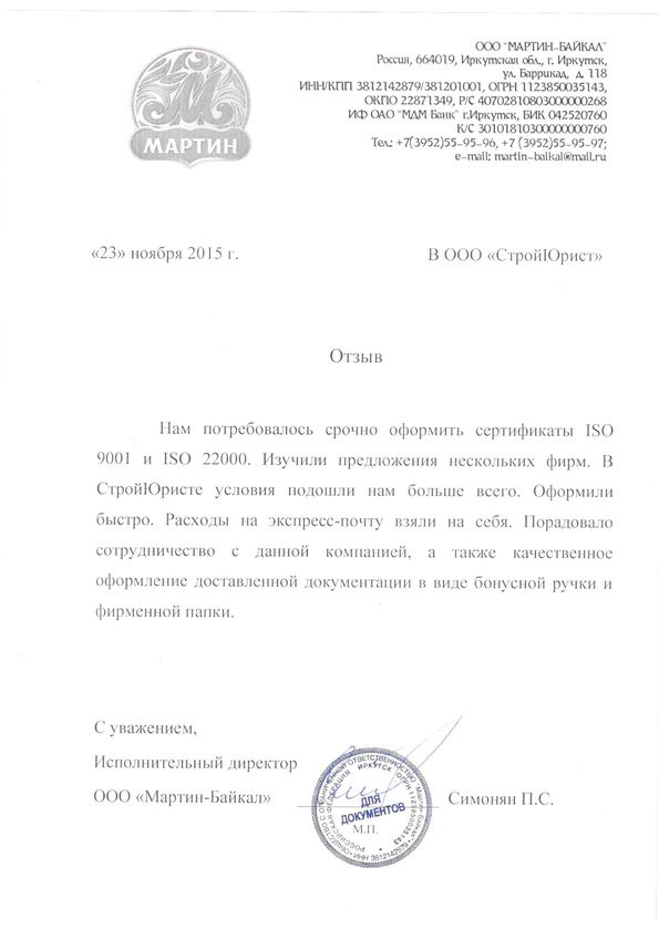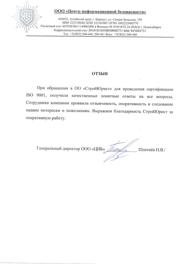 Отзывы клиентов "СтройЮрист" по ISO в Норильске