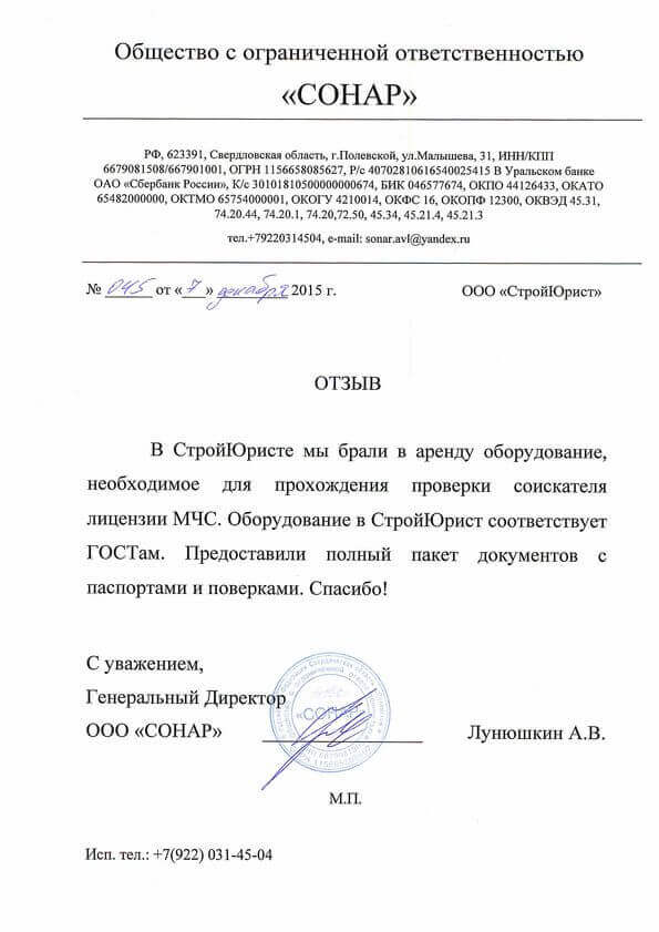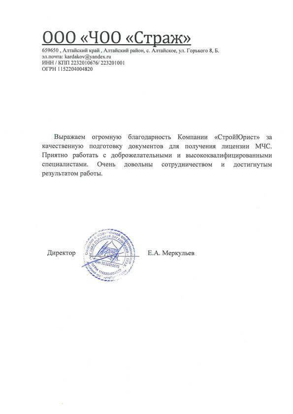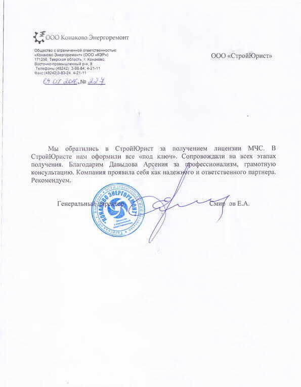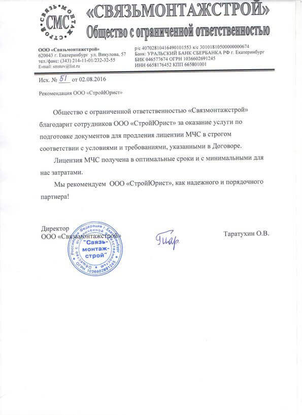 Отзывы клиентов "СтройЮрист" по лицензированию МЧС в Норильске