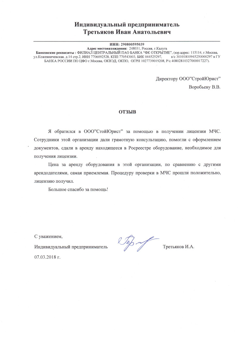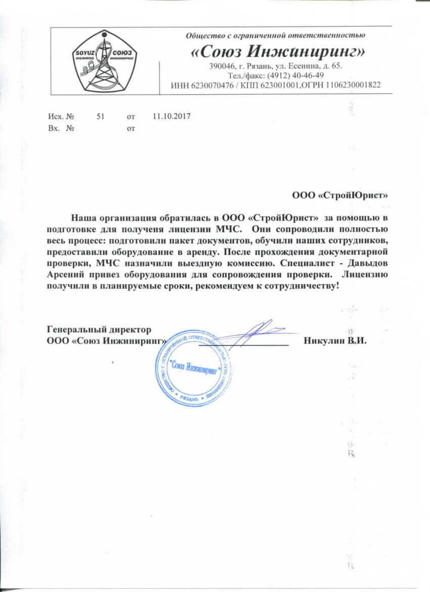 Отзывы клиентов "СтройЮрист" по лицензированию МЧС в Норильске
