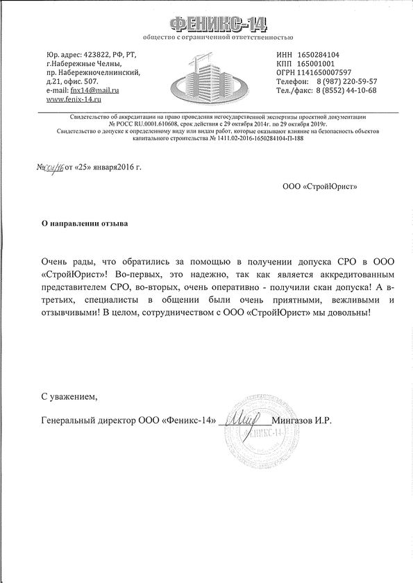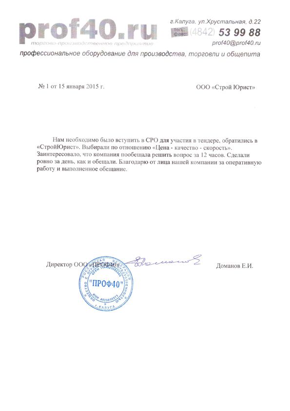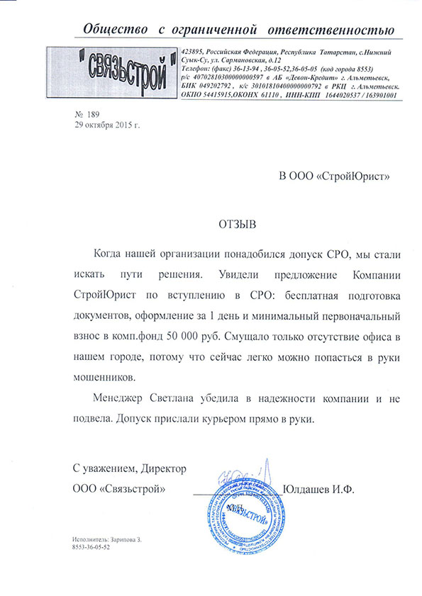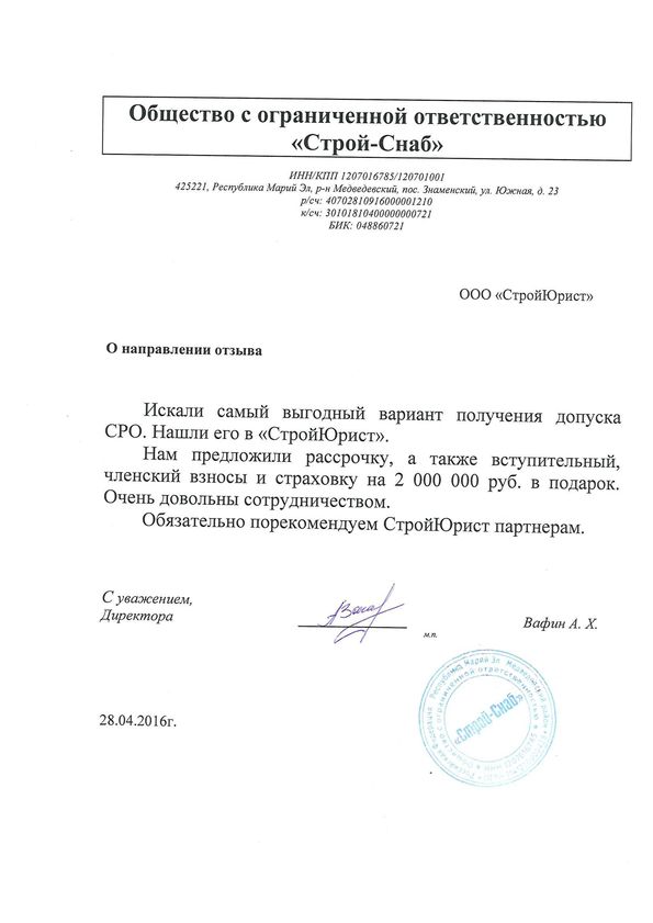 Отзывы клиентов "СтройЮрист" по вступлению в СРО в Норильске