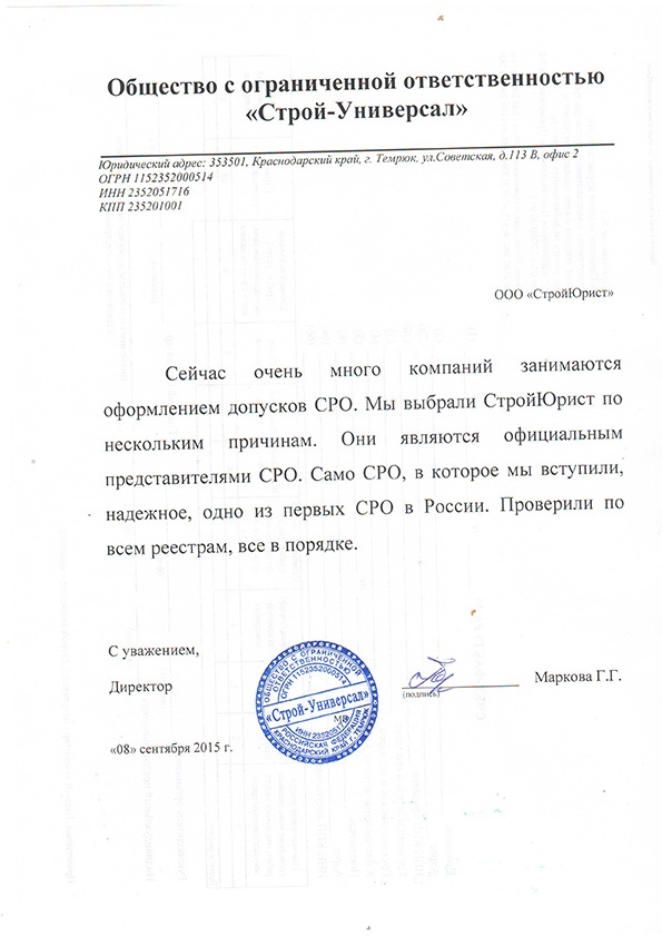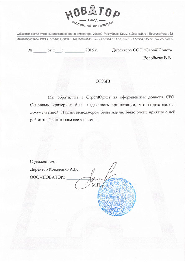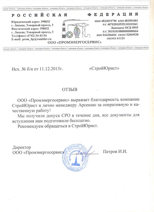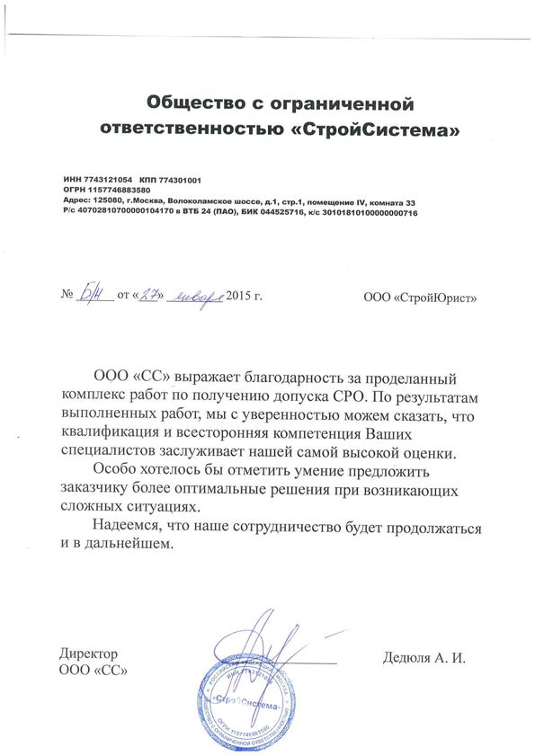 Отзывы клиентов "СтройЮрист" по вступлению в СРО в Норильске