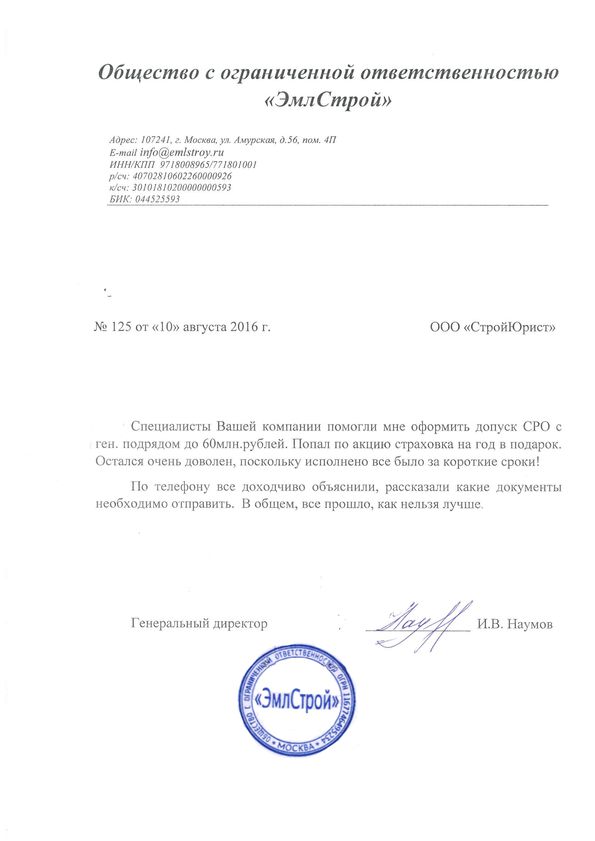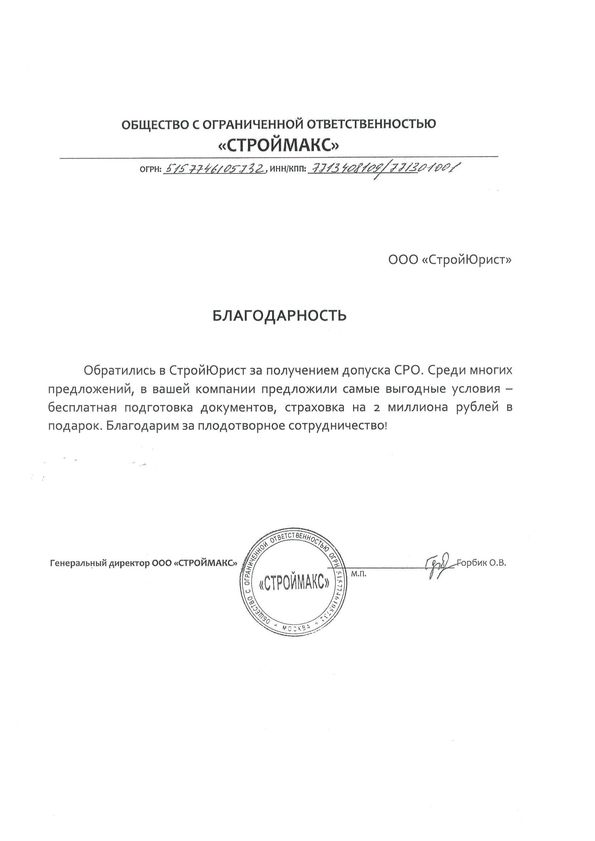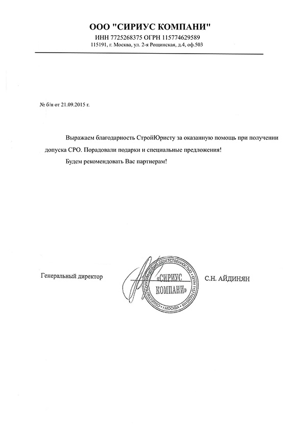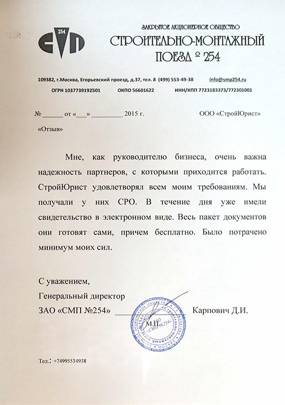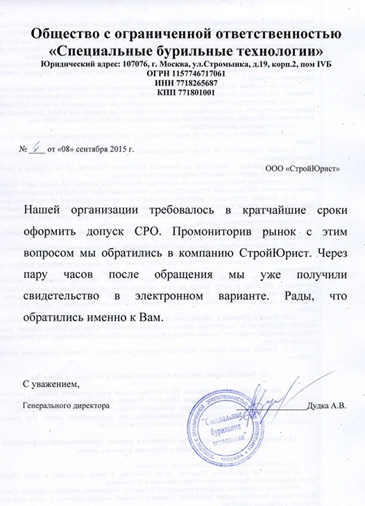 Отзывы клиентов "СтройЮрист" по вступлению в СРО в Норильске