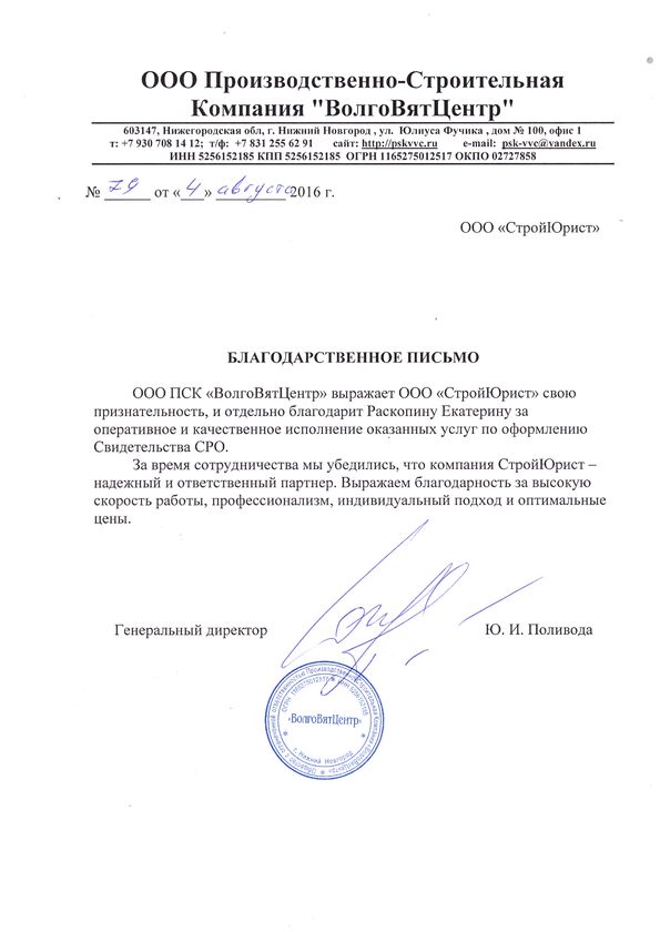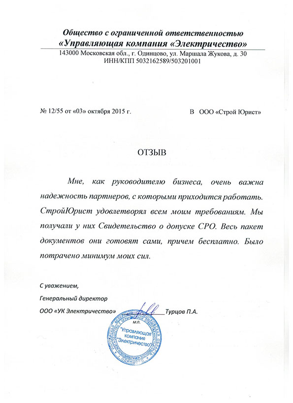 Отзывы клиентов "СтройЮрист" по вступлению в СРО в Норильске