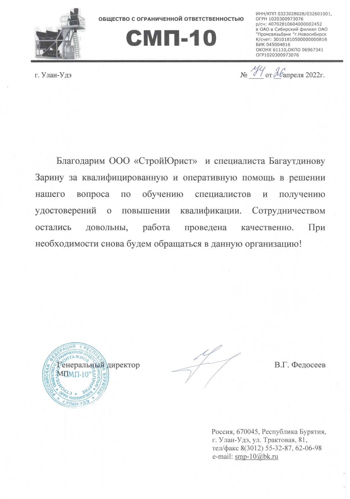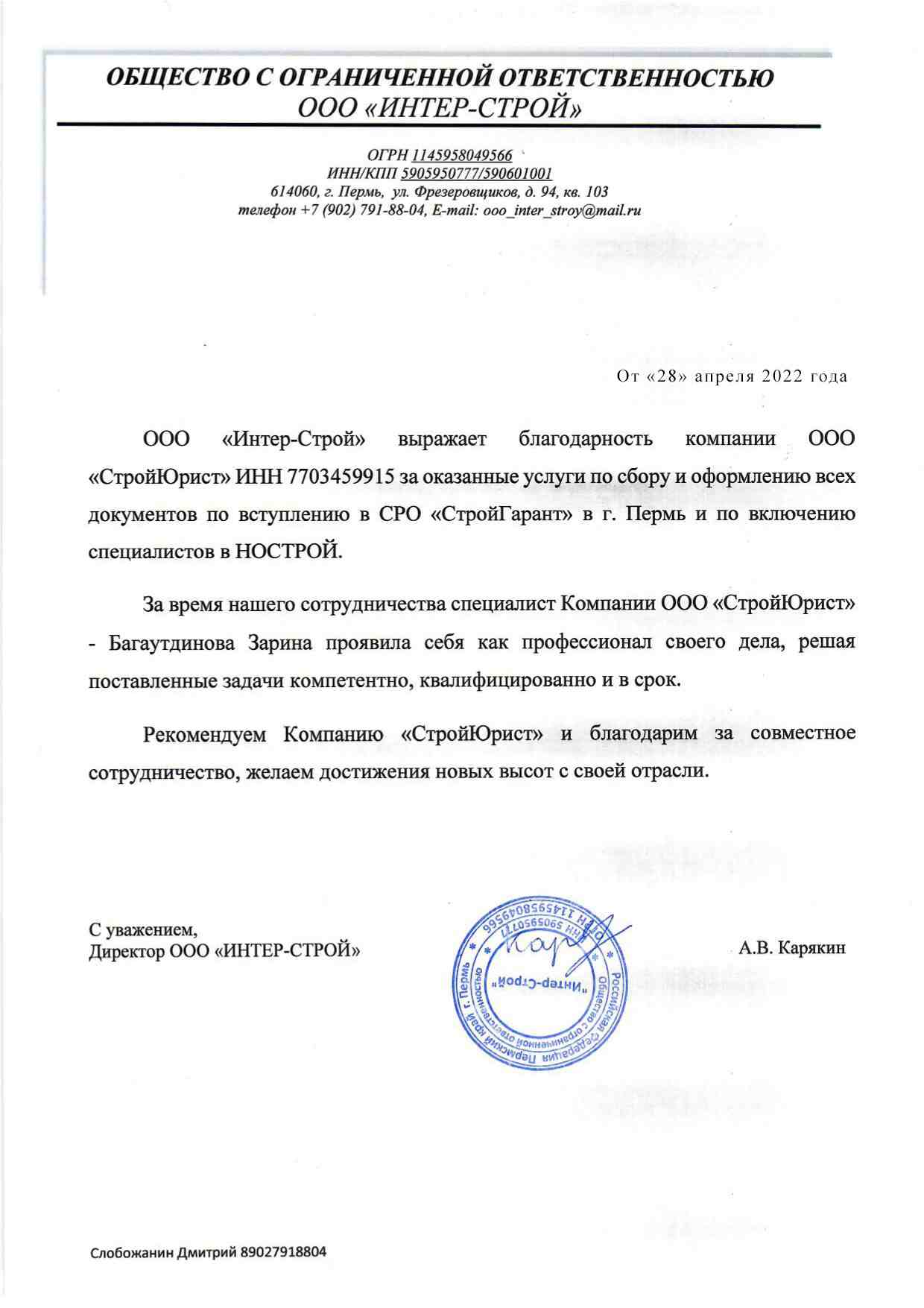 Отзывы клиентов "СтройЮрист" по вступлению в СРО в Норильске