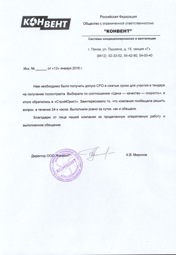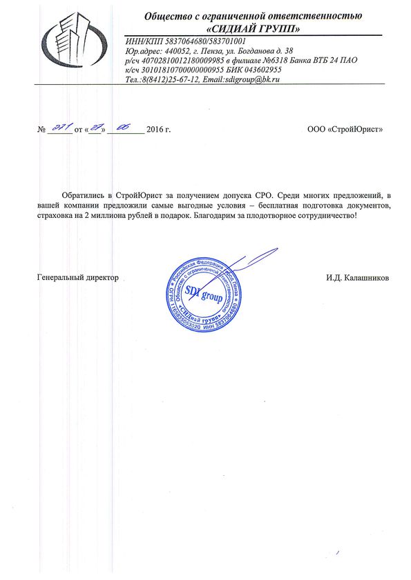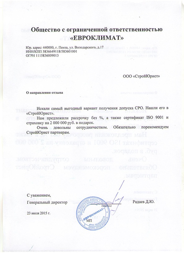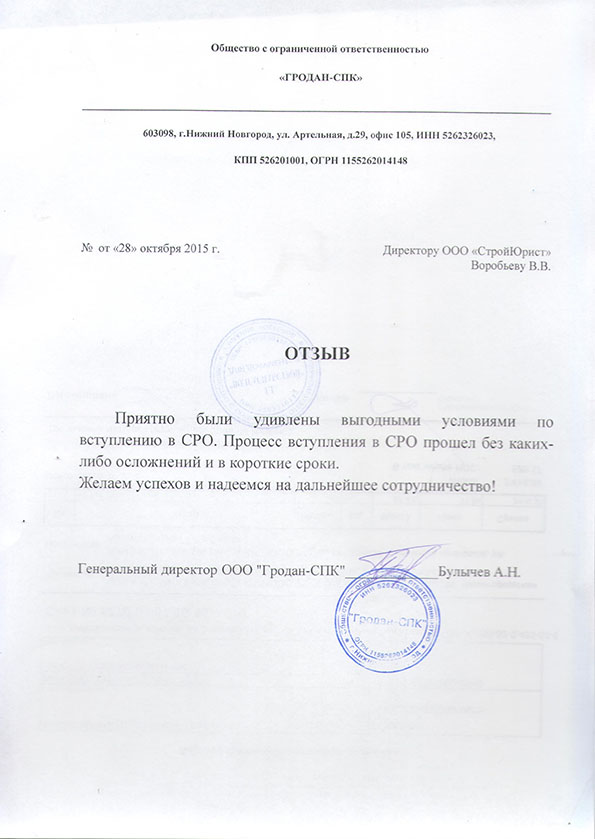 Отзывы клиентов "СтройЮрист" по вступлению в СРО в Норильске