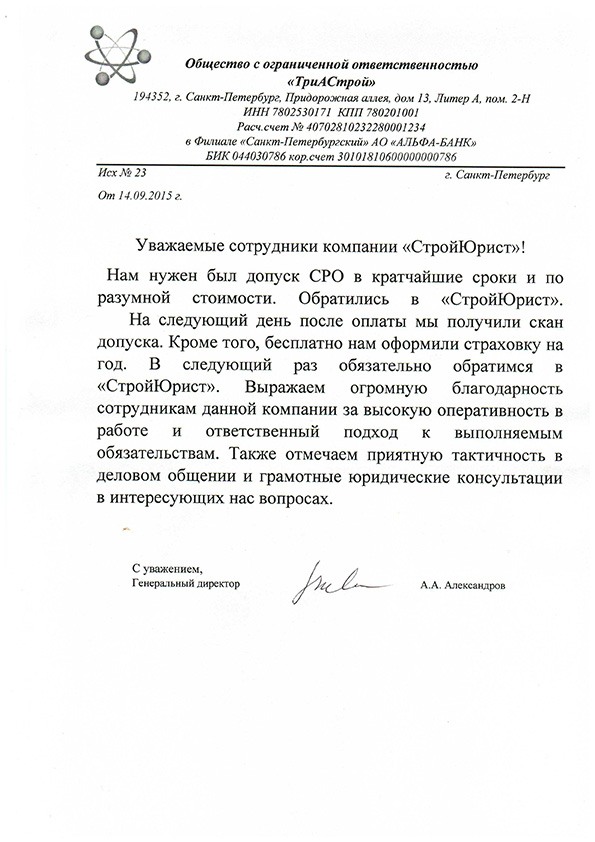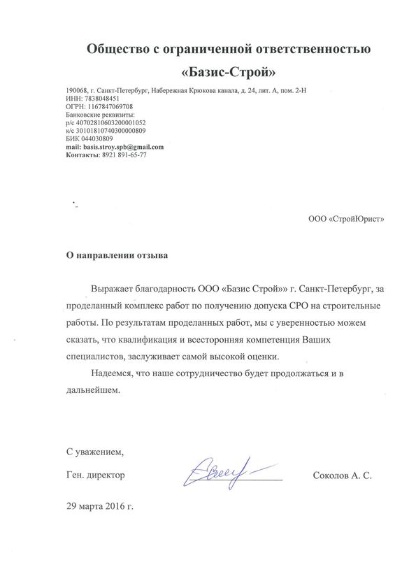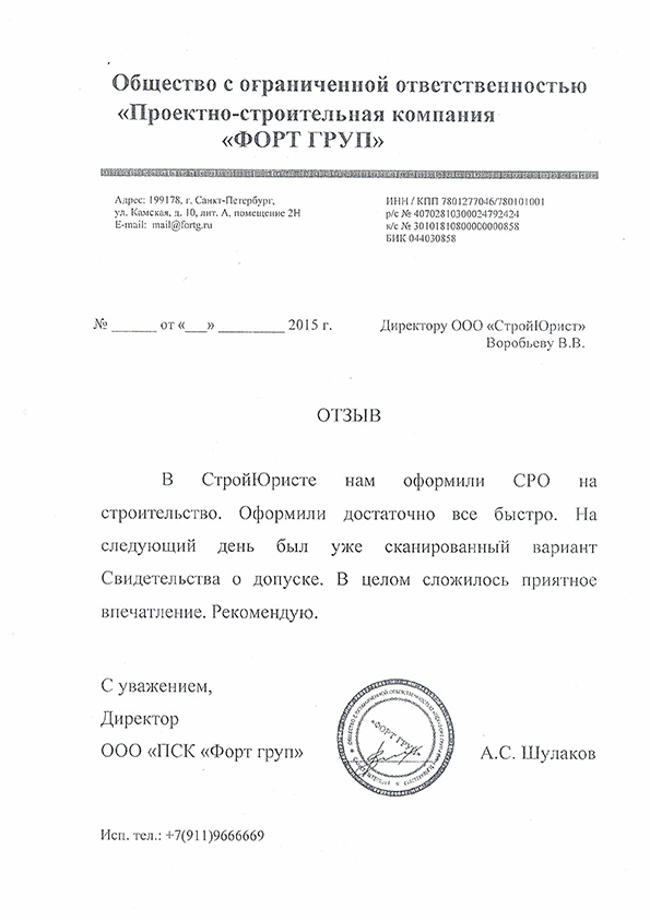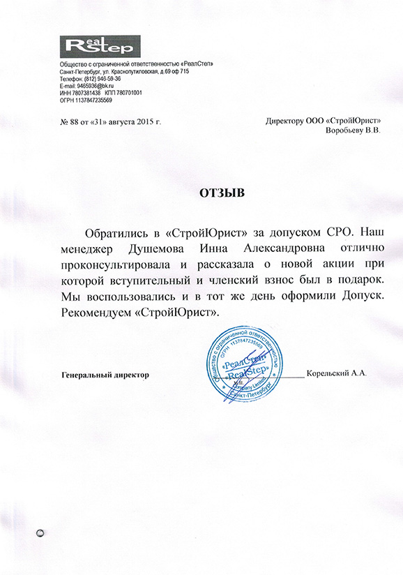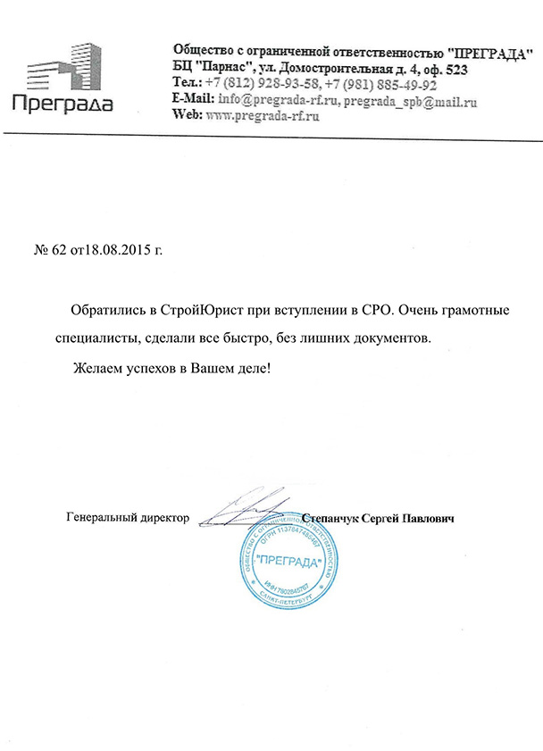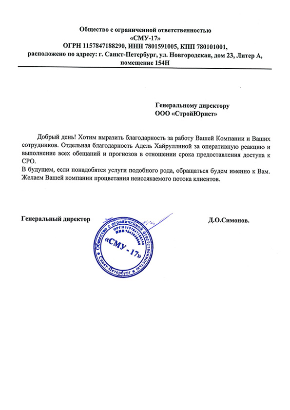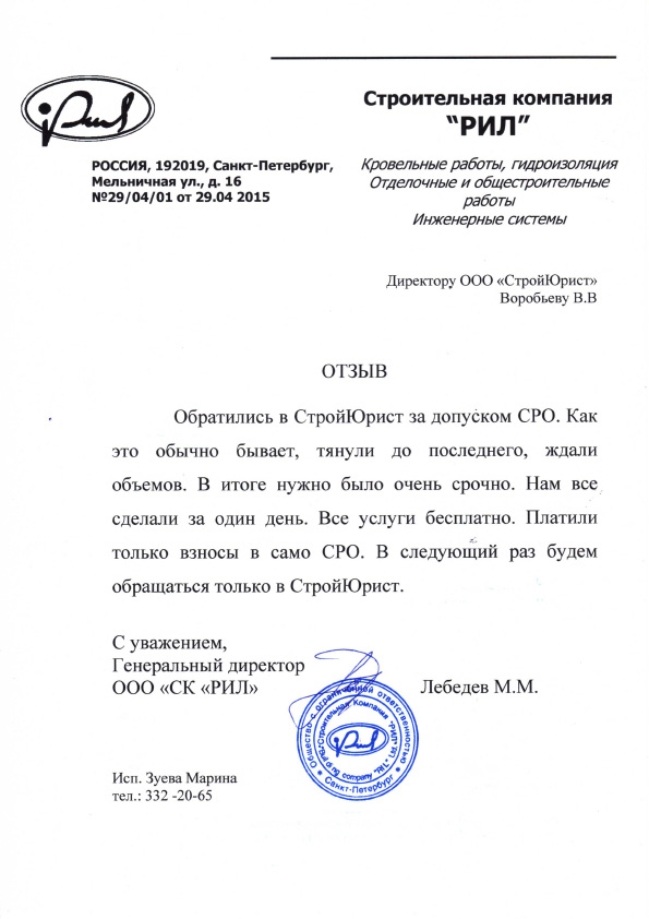 Отзывы клиентов "СтройЮрист" по вступлению в СРО в Норильске