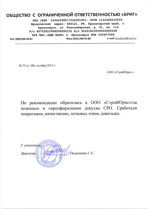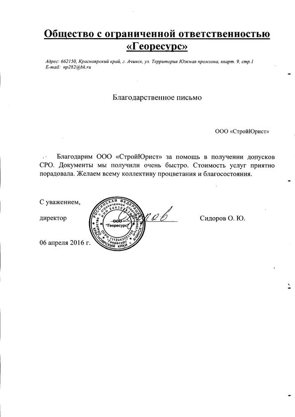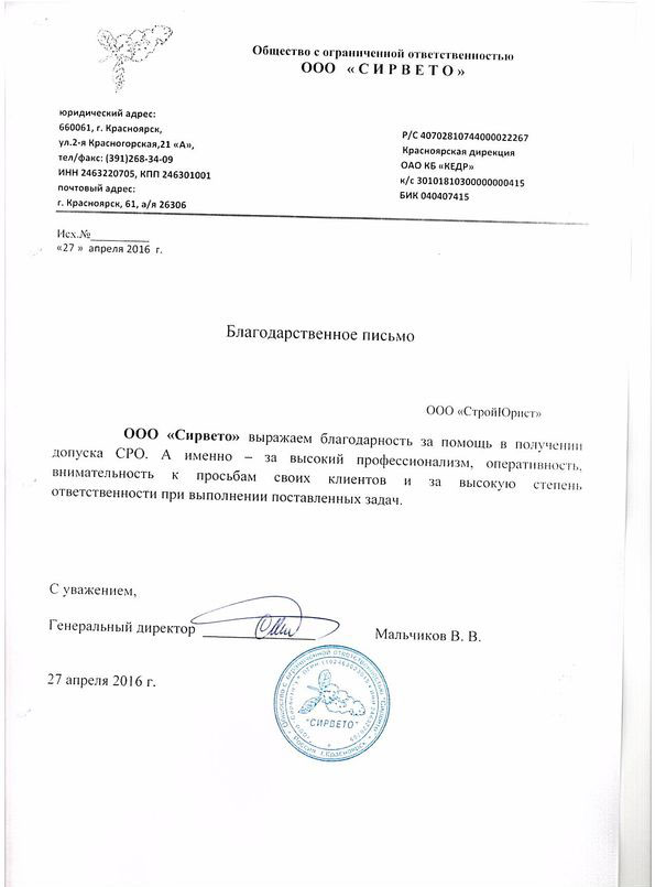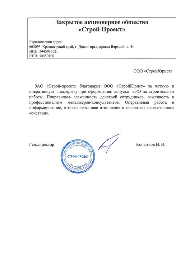 Отзывы клиентов "СтройЮрист" по вступлению в СРО в Норильске