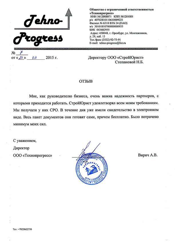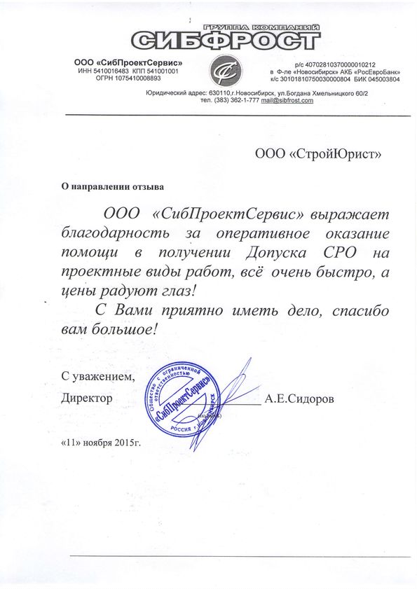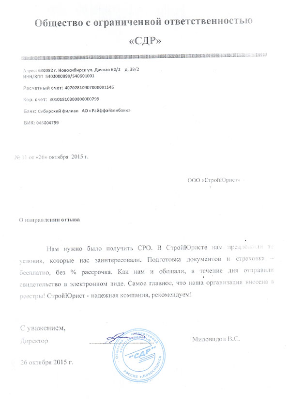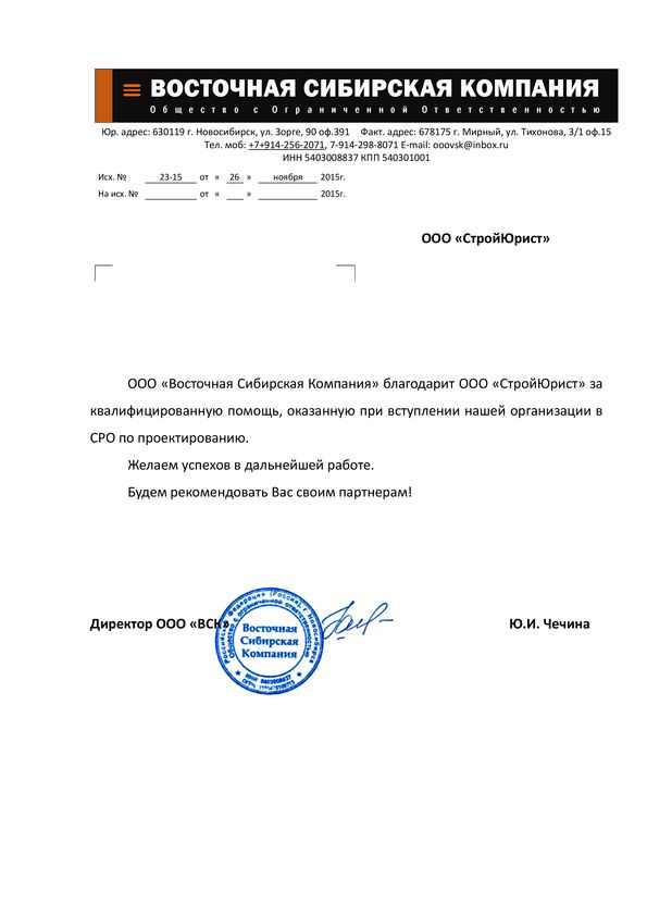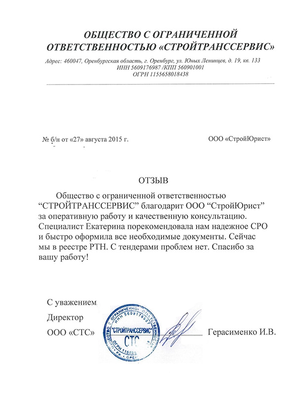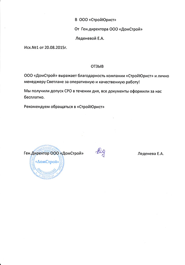 Отзывы клиентов "СтройЮрист" по вступлению в СРО в Норильске
