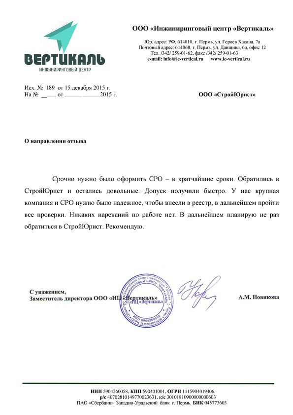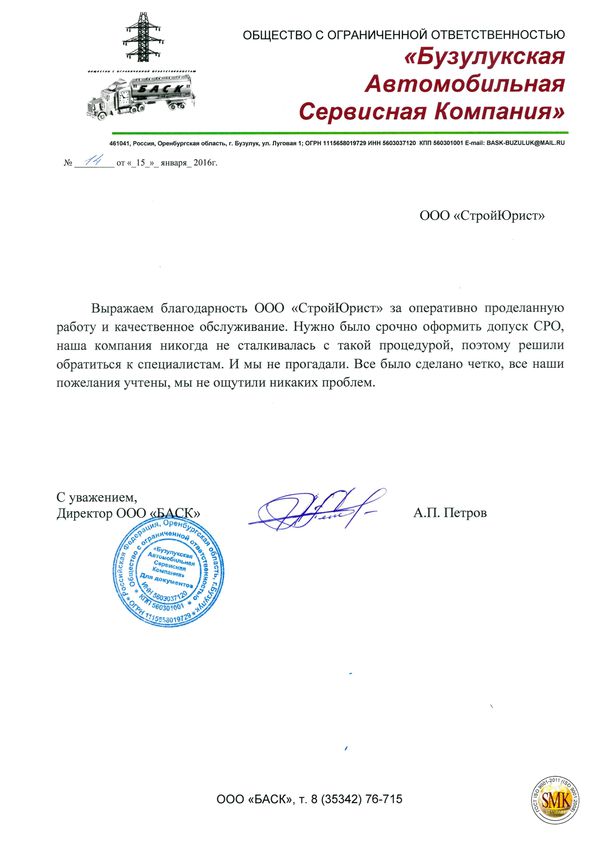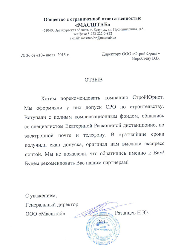 Отзывы клиентов "СтройЮрист" по вступлению в СРО в Норильске