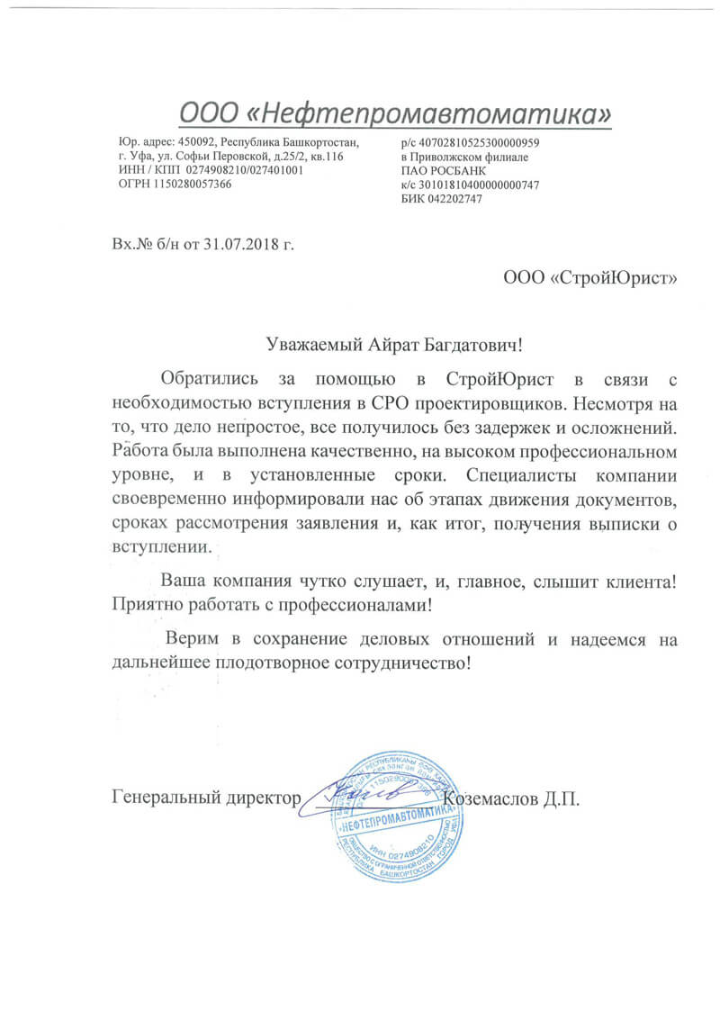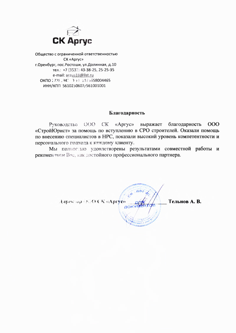 Отзывы клиентов "СтройЮрист" по вступлению в СРО в Норильске