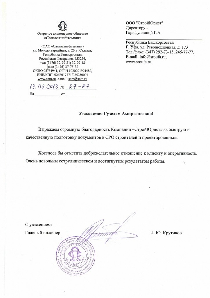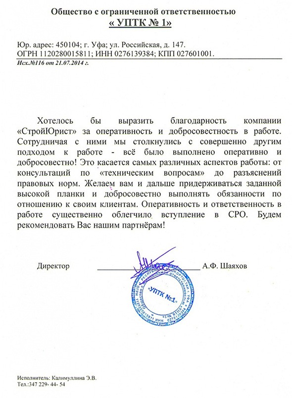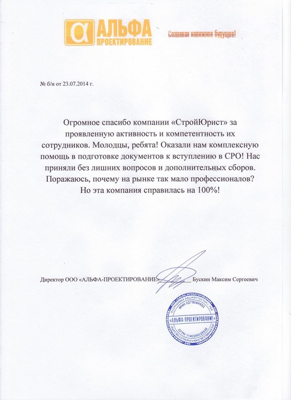 Отзывы клиентов "СтройЮрист" по вступлению в СРО в Норильске