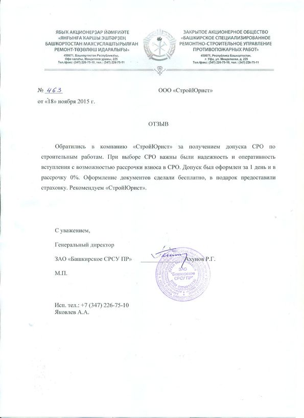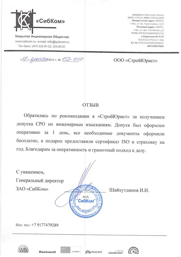 Отзывы клиентов "СтройЮрист" по вступлению в СРО в Норильске