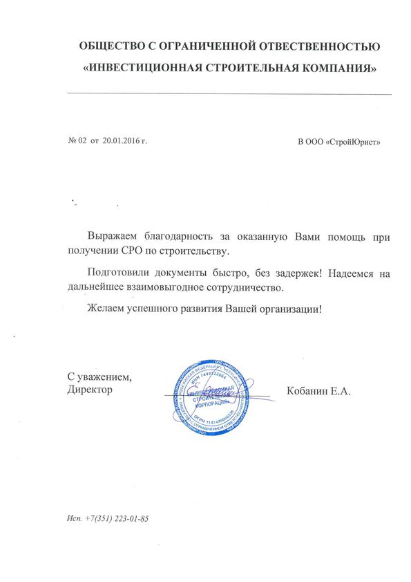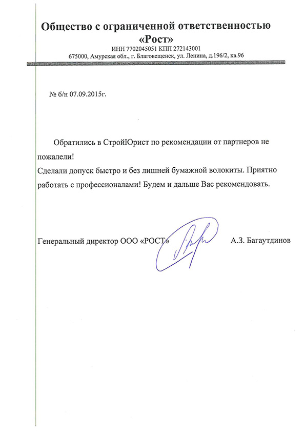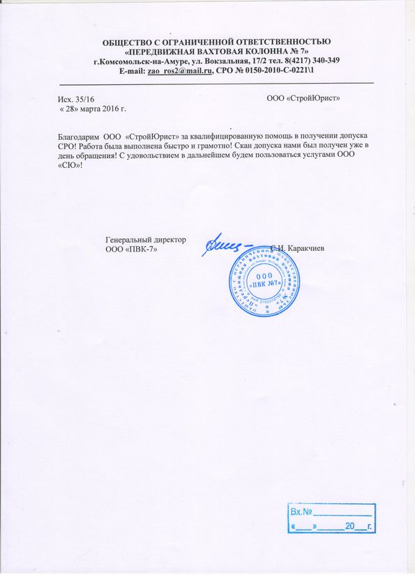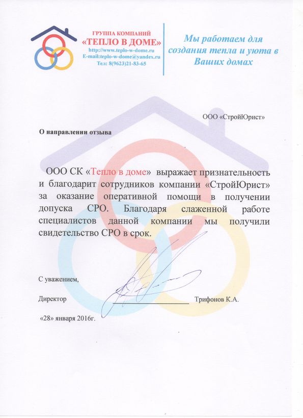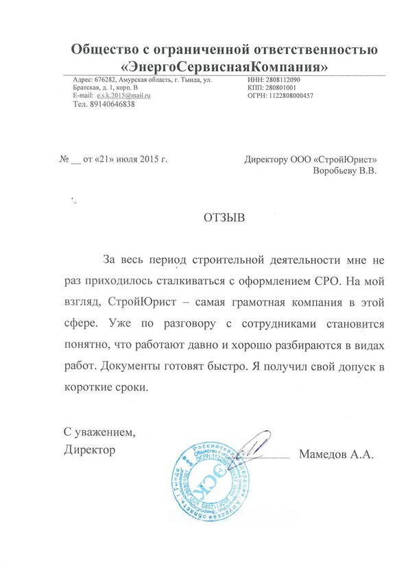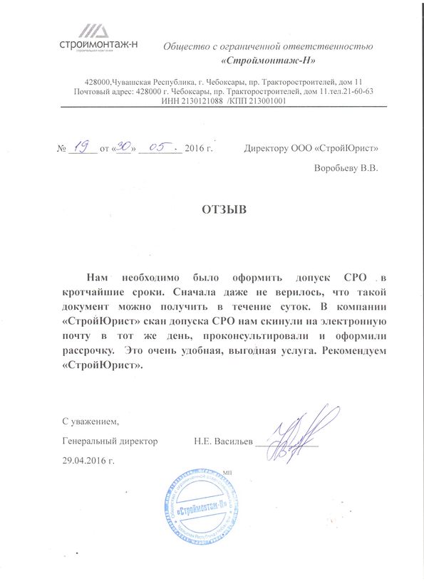 Отзывы клиентов "СтройЮрист" по вступлению в СРО в Норильске