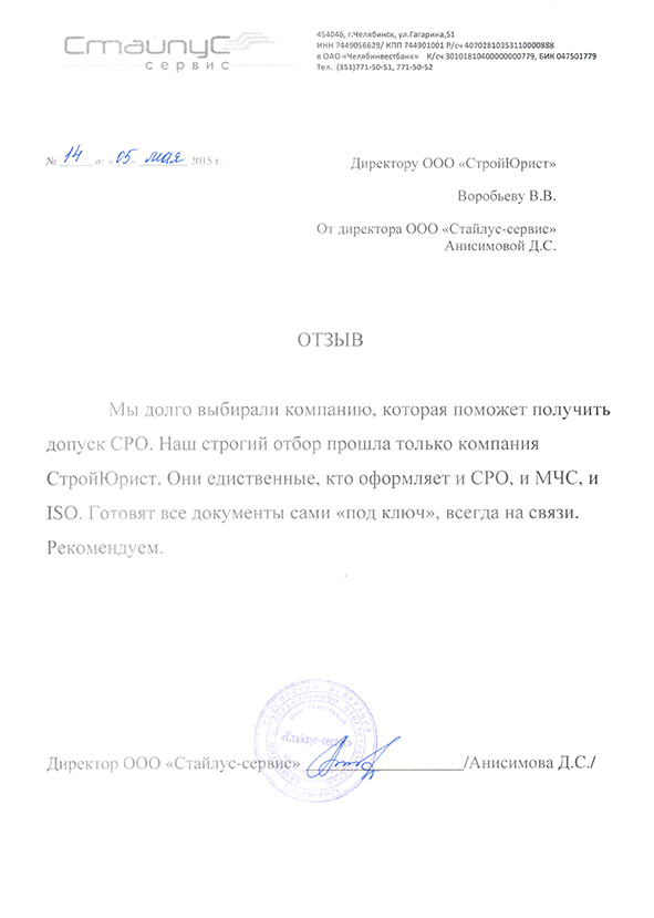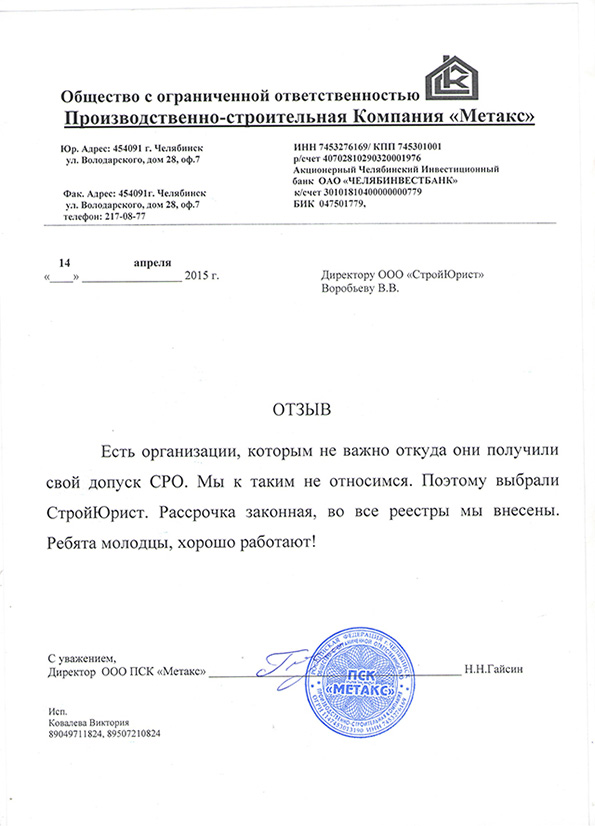 Отзывы клиентов "СтройЮрист" по вступлению в СРО в Норильске