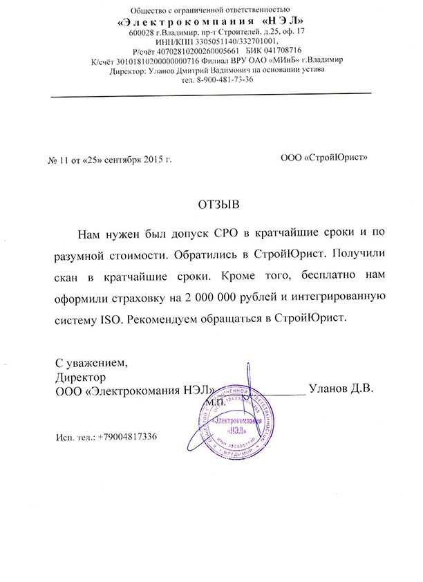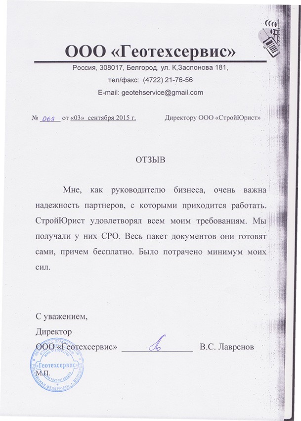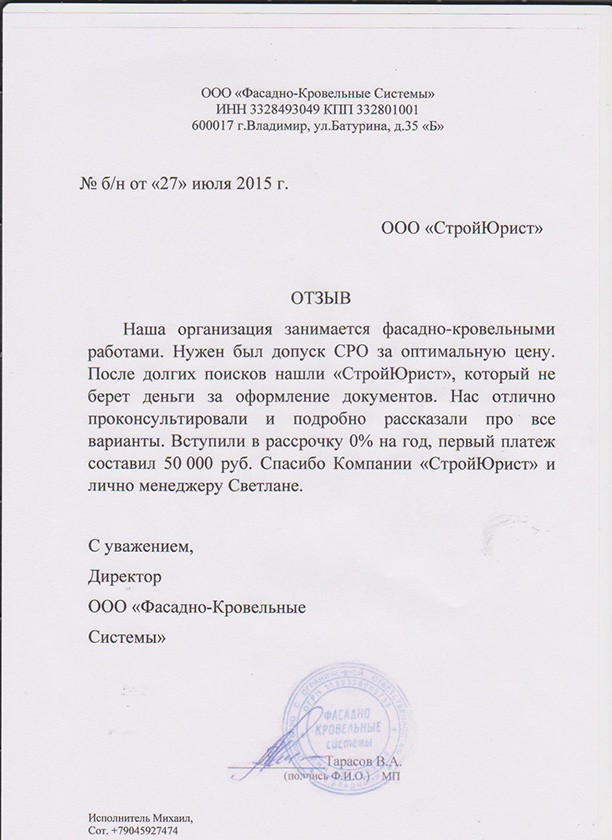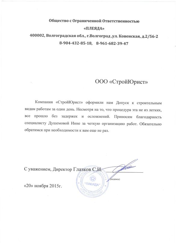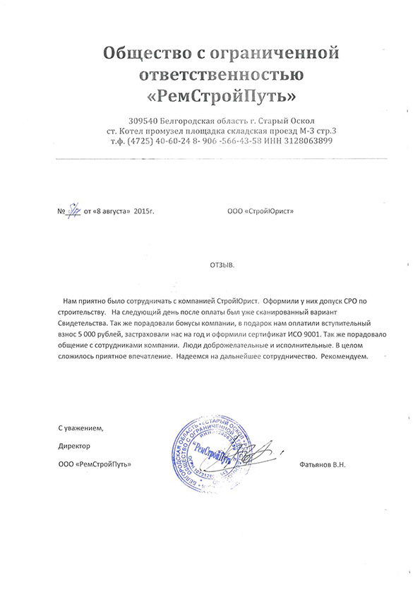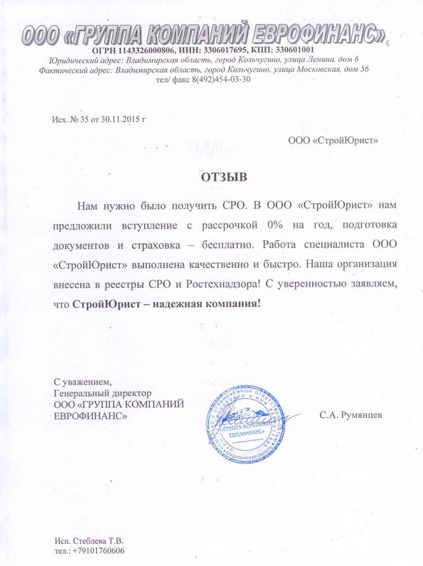 Отзывы клиентов "СтройЮрист" по вступлению в СРО в Норильске